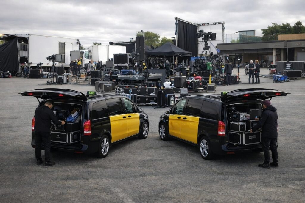 Servicio especializado para staff, equipos técnicos y logística de producciones en Barcelona. Transportamos personal, material y equipamiento entre hoteles, estudios, localizaciones, recintos y aeropuertos. Planificamos horarios, puntos de recogida y destinos para que el rodaje o el evento avance sin interrupciones. Trabajamos con vehículos amplios para pasajeros y carga, y coordinamos cambios de última hora con rapidez. Ideal para filmaciones, rodajes, sesiones de fotos, equipos musicales y deportivos que necesitan puntualidad, discreción y organización en todo momento muy clara.