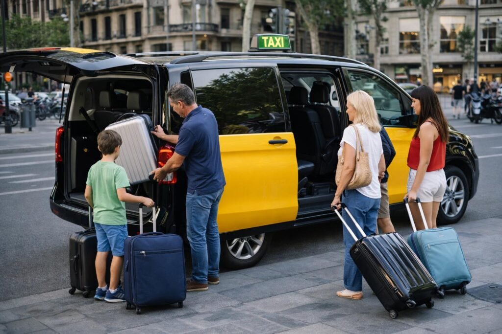 ✔ Recogida directa desde hotel o puerto. ✔ El taxi te deja en la entrada del parque. ✔ Ideal para grupos y familias. ✔ 27–30 minutos desde el centro de Barcelona.